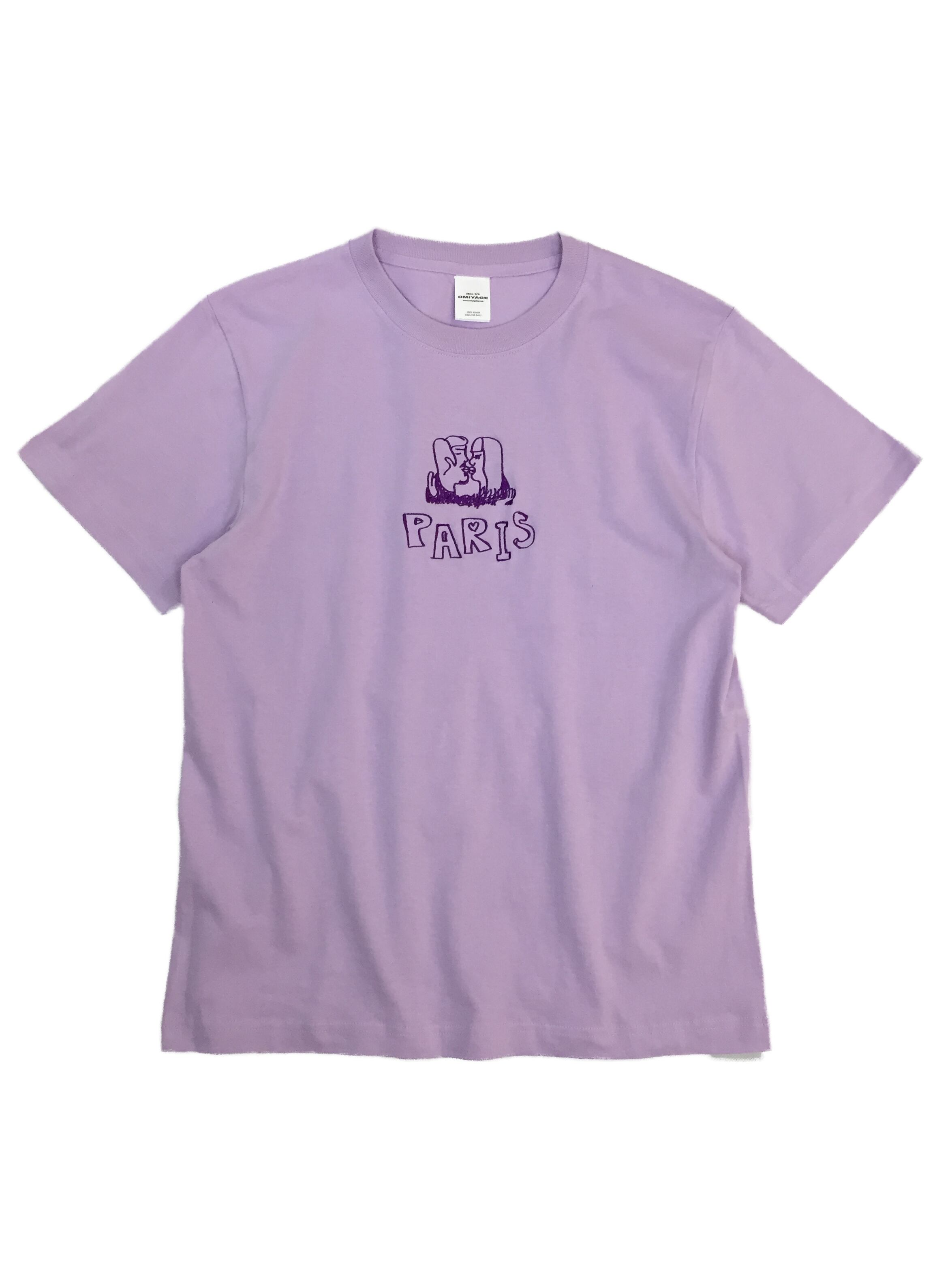 男女のキスとPARISの文字の粗い落書きが胸元に刺繍されています。