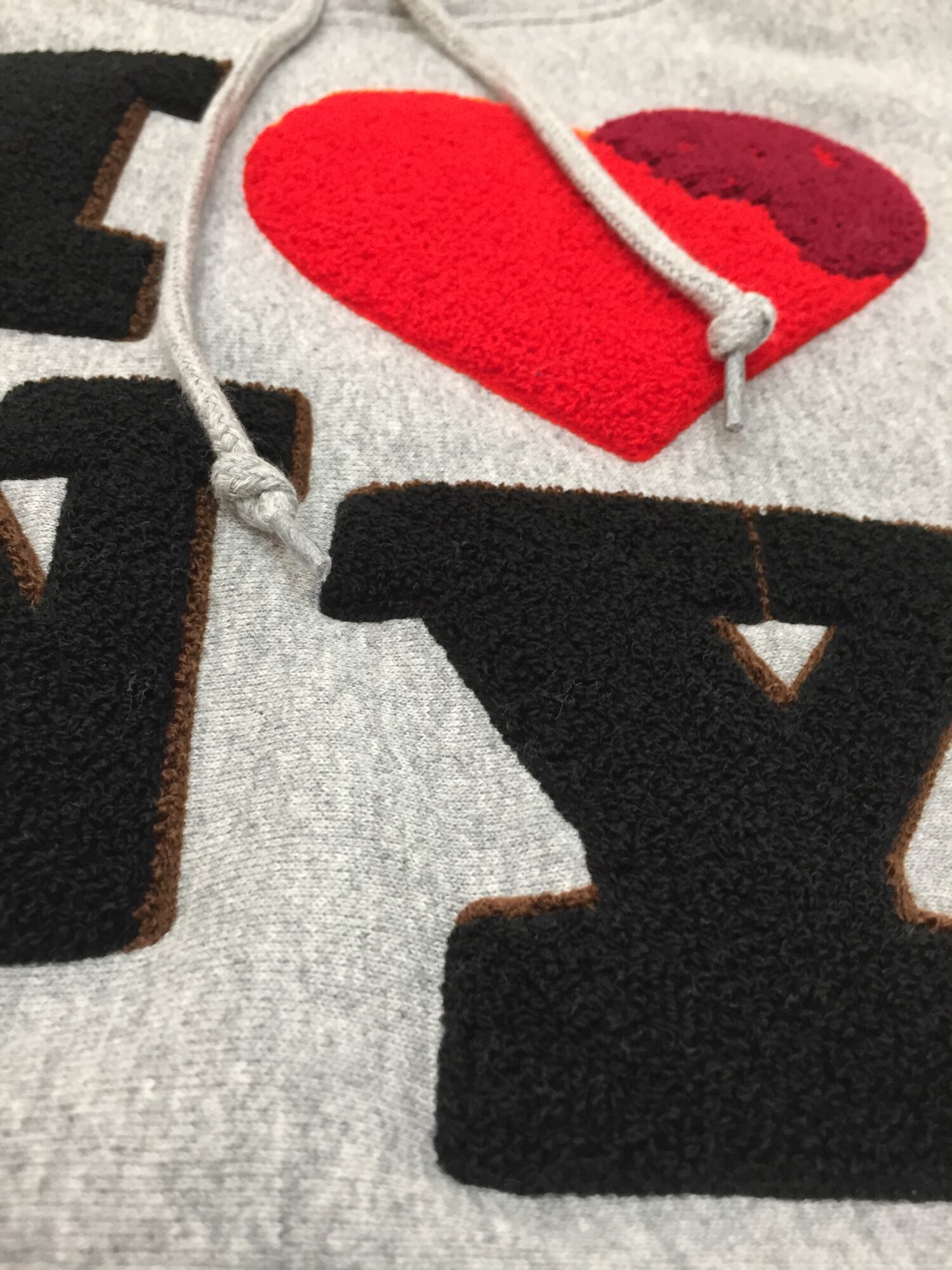 前面にはモコモコの相良(サガラ)刺繍で"I ♡ NY"ロゴが施されています。